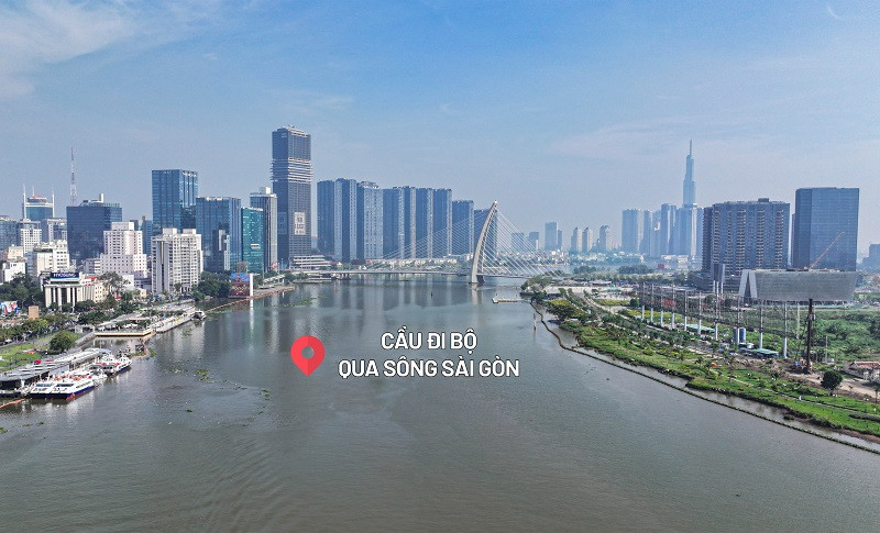 Cầu đi bộ bắc qua sông Sài Gòn sẽ tạo ra sự kết nối mạnh mẽ giữa trung tâm thành phố và khu đô thị mới Thủ Thiêm, đánh dấu một bước tiến quan trọng trong việc phát triển cơ sở hạ tầng giao thông hiện đại của TPHCM.